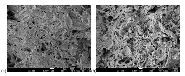經(jīng)過對比分析發(fā)現(xiàn)圖2示出了在相似的850℃溫度下以兩種不同的H 3 PO 4濃度,25%(a)和50%(b)制成的活性炭。結(jié)果表明,與較低濃度(25%)的H3PO4相比,使用50%H3PO4制成的活性炭的孔結(jié)構(gòu)具有較大的孔。當磷酸濃度從25%增加到50%時,孔徑似乎變大并且導(dǎo)致活性炭的比表面積進一步增加。用較低濃度的H3PO4浸漬的活性炭由小孔組成,而某些區(qū)域幾乎沒有孔。從該結(jié)果可以預(yù)見,用高濃度的H 3 PO 4活化劑浸漬的活性炭將形成更多的孔并具有更好的吸附可能性。根據(jù)分析確定,活化劑(H3PO4)和活化溫度會影響活性炭表面的形貌特征。掃描顯微鏡結(jié)果顯示活性炭的孔,孔和粗糙表面。然而,掃描結(jié)果顯示活性炭的形狀,孔和表面不均勻。