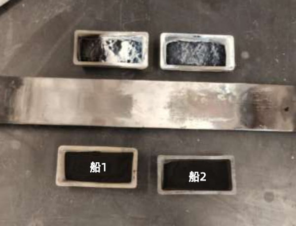 氣體從右向左流動(dòng),材料最常沉積在圖像中的船1上。這說(shuō)明材料從船1運(yùn)送到船2并與樣品表面的碳發(fā)生反應(yīng)。一旦樣品表面被碳化硅擠滿,碳化硅就不能再與碳反應(yīng),而是將碳化硅吹出爐外。
