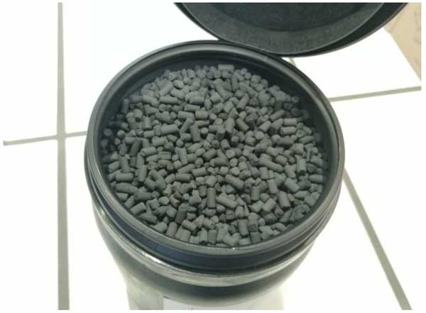 根據(jù)直接使用瓶裝真實氣體所獲得的結(jié)果,包括列出的催化劑毒物,這會導(dǎo)致催化劑快速降解,因此在第一個反應(yīng)器的上游安裝了活性炭過濾器。為此,將金屬氧化物浸漬的活性炭顆粒添加到氣體混合站。這些顆粒專門開發(fā)用于從缺氧氣流(例如CO2、N2、CO和H2)中去除硫化氫、有機硫醇、二氧化硫、硫化羰和氮氧化物。它們的銅含量為7%(以CuO計),直徑為3mm,長度為7mm(圖3)。將總共約300毫升的這些顆;钚蕴考尤霘怏w混合站。