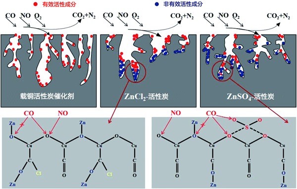 圖4:ZnCl2和ZnSO4對活性炭催化劑的失活機(jī)理。