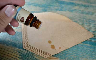 這一步是可選的,但如果你想要的話,你可以添加幾滴精油到過濾器的外部,讓你的鞋子附魔上你喜歡的氣味。并且你會發(fā)現(xiàn)活性炭會吸收一些精油氣味,但不是全部?Х冗^濾紙傾向于從制作的咖啡渣中吸收油,同時讓水通過,這對我們來說是比較適合的。讓精油放在過濾器的外部,而臭味和鞋子的水分通過過濾器吸收到活性炭粉中。