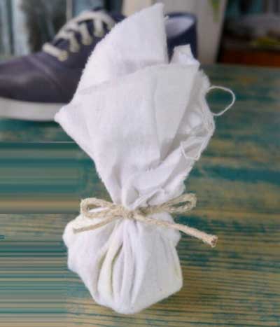 你的活性炭已經(jīng)填裝到咖啡過濾紙上了,精油也滴上去了,F(xiàn)在只要盡可能緊地包裹過濾紙,同時將角落塞入以防止活性炭泄漏。如果您想要格外謹慎,可以使用一小塊膠帶密封好,并在下一步中保持開啟狀態(tài)。