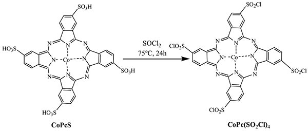 圖2.通過亞砜氯化物制備改性磺化鈷酞菁的示意圖。