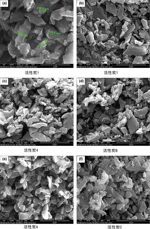 圖2:幾種活性炭的SEM圖像。