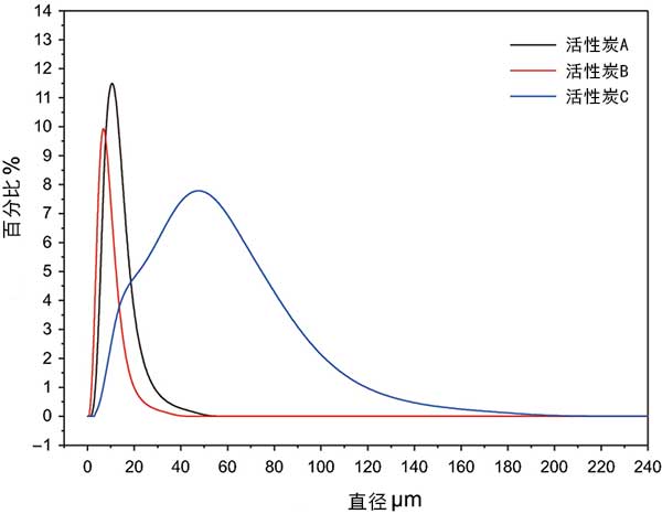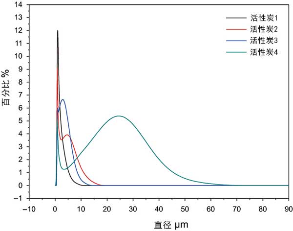 圖3:活性炭數(shù)字系列的粒度分布圖。