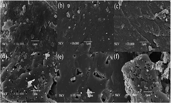 從表面形態(tài)分析不同煤和活性炭的SEM圖像如圖2所示。它表明三種活性炭的表面相對光滑,沒有任何毛孔,除了偶爾的裂縫。在活化后,三個活性炭的外表面都顯示出不規(guī)則的孔;钚蕴康谋砻嫦鄬Υ植诓⑶冶憩F(xiàn)出更多的孔。而具有低灰分和揮發(fā)性物質(zhì)含量的炭2顯示出相當光滑的表面?赡苁窃跉饣^程中形成的金屬鉀可以擴散到碳基質(zhì)的內(nèi)部結(jié)構(gòu)中,從而擴大現(xiàn)有的孔隙并產(chǎn)生新的孔隙。
