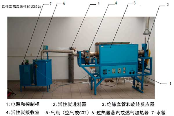 活性炭在回轉(zhuǎn)窯中在空氣,蒸汽或二氧化碳氣氛中在400℃下在空氣,蒸汽或二氧化碳氣氛中在800℃下進行改性。改性在1小時內(nèi)進行。用來自空氣,二氧化碳或水蒸氣的氧氣改性活性炭導致在碳表面上形成酸性氧官能團。在800℃下用水蒸氣或二氧化碳氧化或活化活性炭導致形成堿性官能團。所提出的改性方法允許獲得表面的不同化學特性的吸附劑。在改性之前,用蒸餾水漂洗活性炭幾次。將碳在回轉(zhuǎn)窯中在400或800℃的溫度下改性1小時(圖1)。