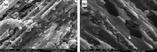 進行了近距離分析以活性炭的基礎性質。它包括水分的百分比,揮發(fā)物的百分比,灰分的量以及有機材料中可用的固定碳。再通過SEM檢測強電子束轟擊活性炭樣本時從樣本表面散射的電子來幫助分析詳細的高分辨率表面圖像。與SEM一起,EDS可以通過深入分析其表面來極大地幫助獲取有關特定樣品所含化學物質的信息。在本次測試中,通過使用SEM和EDS,分析了在吸附機理過程中氟吸收前后的活性炭。它有助于理解紋理形態(tài)及其在吸附中的意義。數(shù)據(jù)如圖1所示。結果表明,在氟化物吸附之前,活性炭表面具有大量的粗糙度,隨后在氟化物吸收中會降低,并使表面光滑并降低了孔隙率。